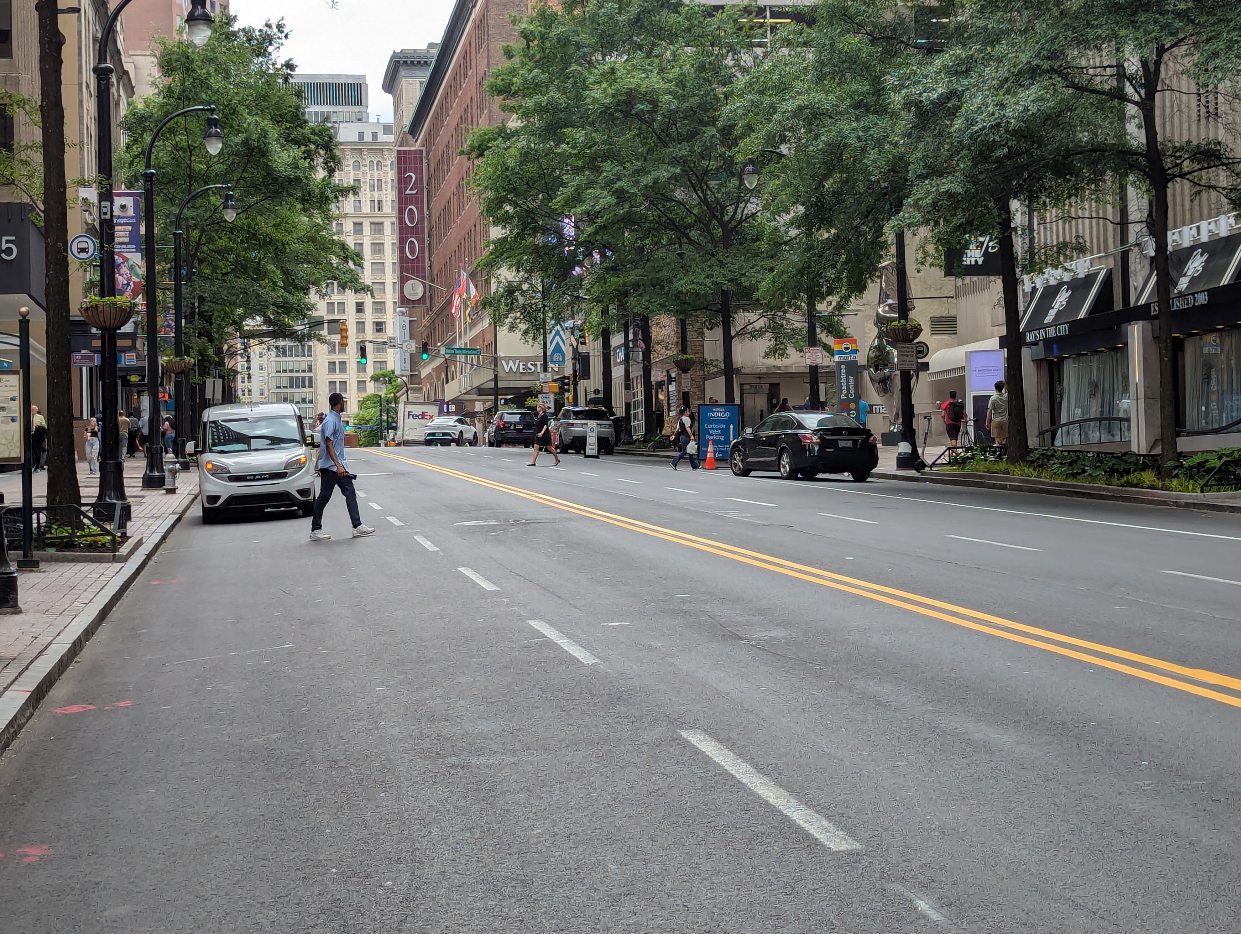 Peachtree’s long, flat, direct design encourages vehicle speed. At the same time, its density and transit access generate constant foot traffic. That combination, fast cars and frequent crossings, is exactly why the City of Atlanta must invest in real safety infrastructure.