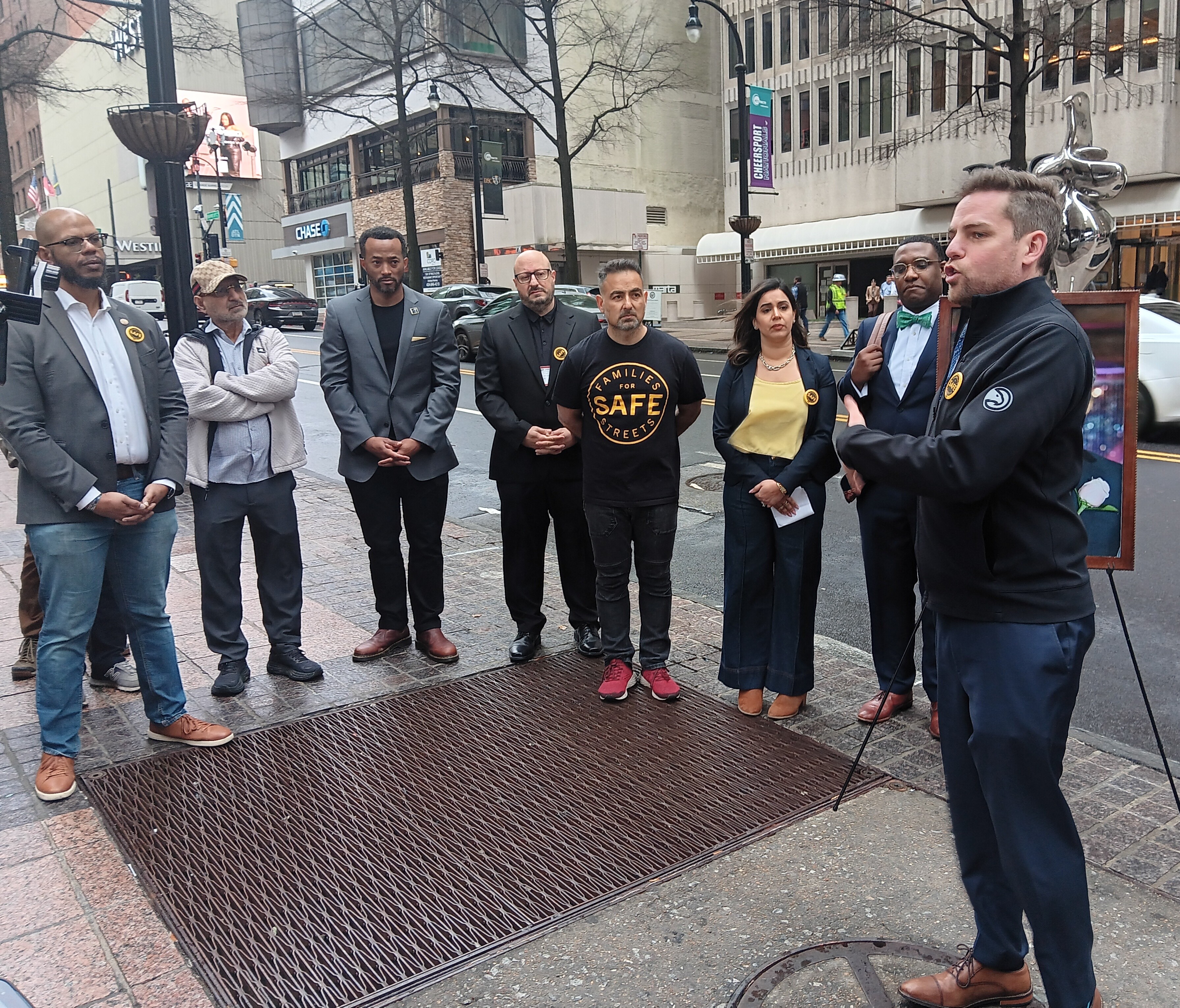 Propel ATL and Atlanta Families for Safe Streets held a press conference on Wednesday (Feb. 11) to call for a mid-block raised crossing and the funded safety project to be installed on Atlanta’s signature street, where multiple people have been killed and injured while attempting to cross. Two members of Atlanta City Council, Jason Dozier (District 4) and Matt Westmoreland (Post 2, At-Large) were present to speak and lend support.